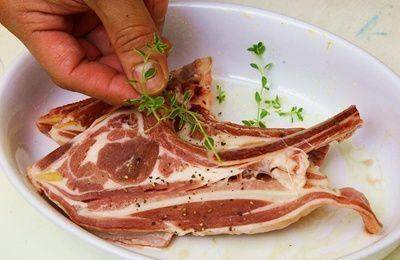 【薄荷酱羊排】食材:羊肩排3支(约350克)、干燥百里香少许、新鲜薄荷叶2小株、干燥莳萝子少许、白酒20c.c、橄榄油适量、柠檬汁少许。调味料:盐少许、白砂糖少许、黄芥末2匙、黑胡椒粒少许