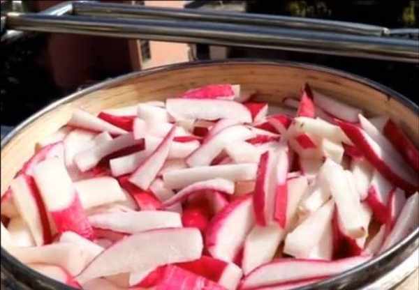 5、白萝卜洗净去皮切滚刀块儿备用。
