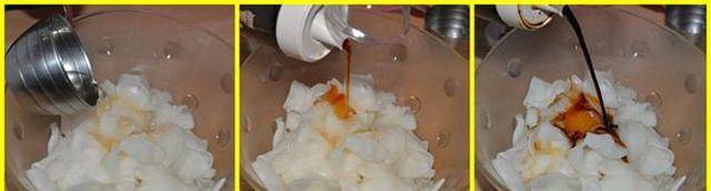 50CC的醋、少许香油、和酱油再拌匀。酱油要适量(可试味再酌增)拿捏,他也有很重要的功能,1:增香。2:调色,使颜色看来温暖而不显惨白。3:作为搅拌均匀的显色追踪剂,很好的参考依据。