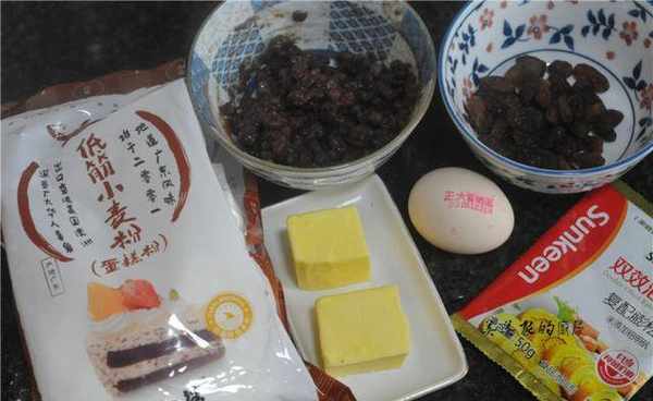 辅料盐2克泡打粉5克蜜红豆适量葡萄干适量