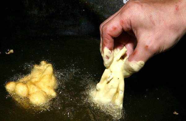 柳松菇沾裹天妇罗炸粉面糊。