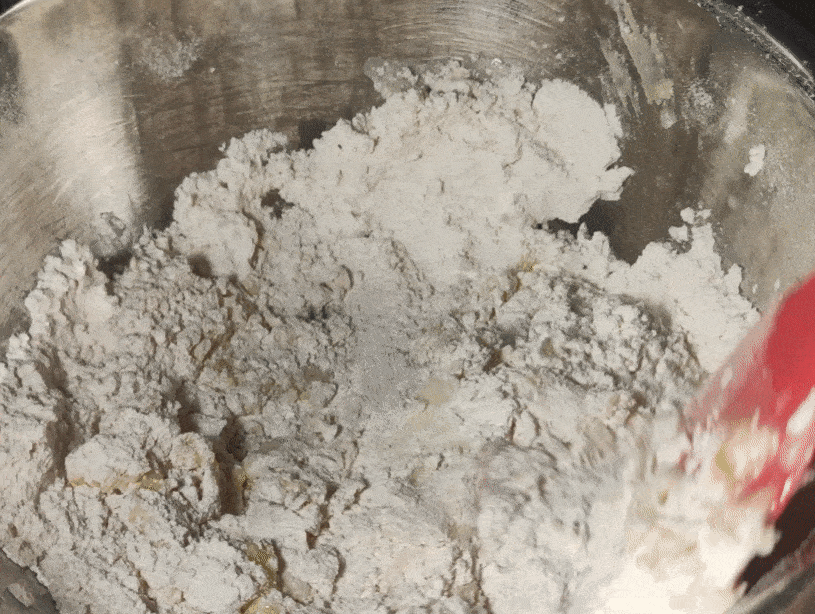 用刮刀搅拌均匀,至无干粉状态即可。