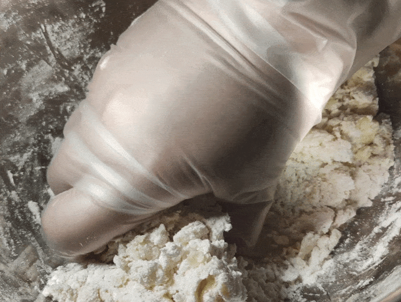 用手稍加搓揉,使干粉成团。