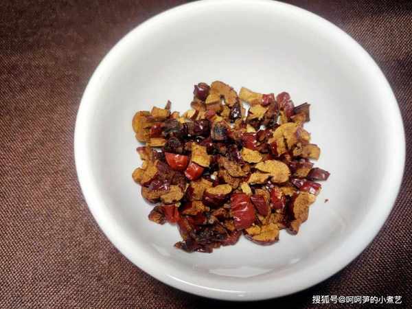 红枣去核切成小粒。