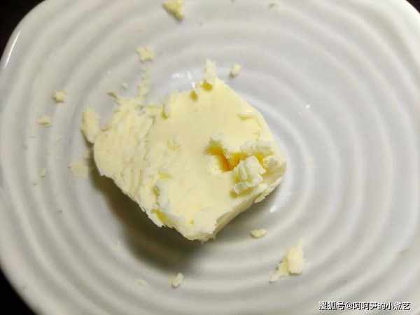 黄油从冰箱取出,不需要刻意软化,晾至不冰手即可。