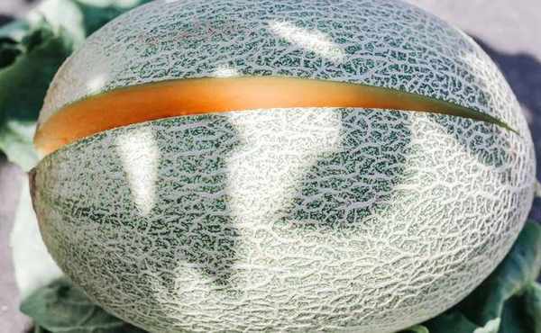 果皮只有薄薄的一层,包裹着厚厚的果肉。用刀划开后,橘黄的果肉,饱满紧实,瓜瓤上溢出一缕浓郁的汁水,凑近闻一股瓜果的香甜味溢满了整个鼻腔。