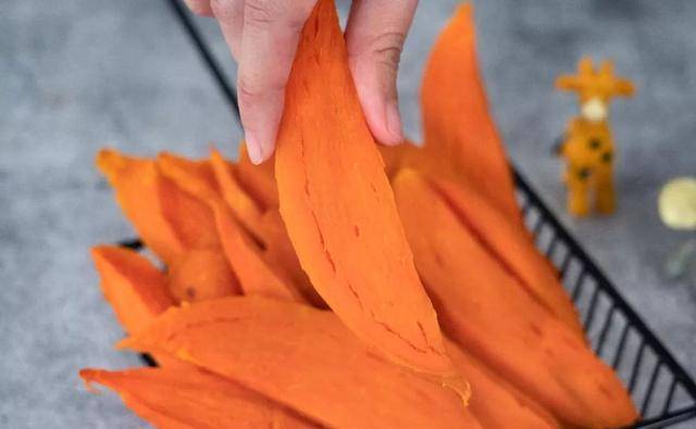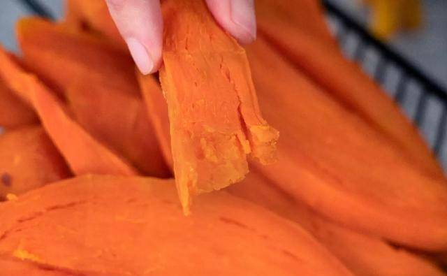 烤箱这个温度出来的红薯干还是偏软一点,但已经有韧性了,吃起来软糯弹牙,想更干就延长时间,想软一点就少些时间。