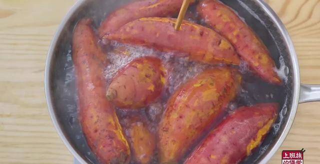 做红薯干的红薯尽量选择红心蜜薯,红皮橙瓤,甜度高,做出来的红薯干更好吃;先把洗干净的红薯放到锅里煮熟,带皮煮味道更好,香味足,还不用削皮。