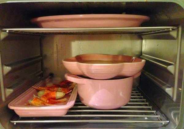 2)蟹钳入炉蒸以100度蒸3分钟(因我用的是熟蟹钳,如用花蟹便加少量葱段蒸约10分钟至7成熟)