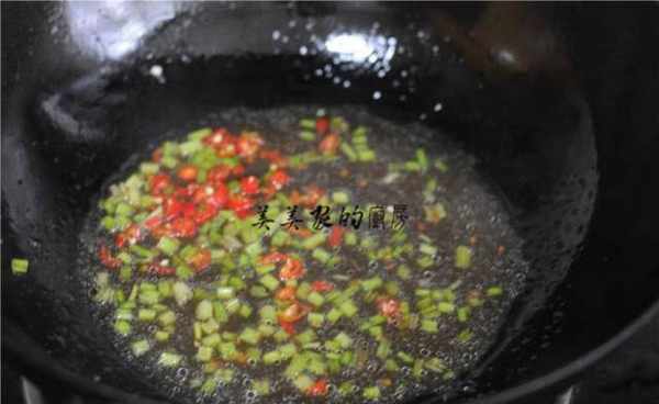 炒锅倒油烧热,放入1小勺郫县豆瓣酱,1大勺沙茶酱,1小勺蚝油,1大勺料酒,再放入切碎的芹菜和小米椒碎,炒出香味。