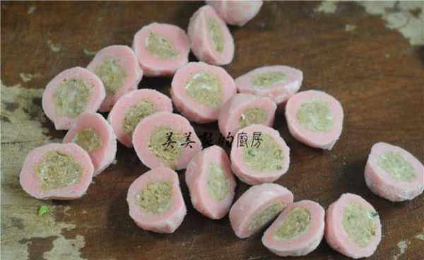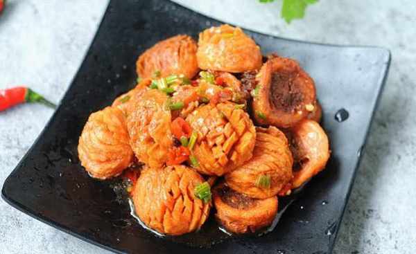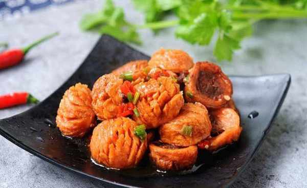 2、炸的时候注意火候,花刀稍微裂开成花瓣状即可捞出,上色不要太深。牛丸也可以换成虾丸、鱼丸,根据自己的喜好来吧。