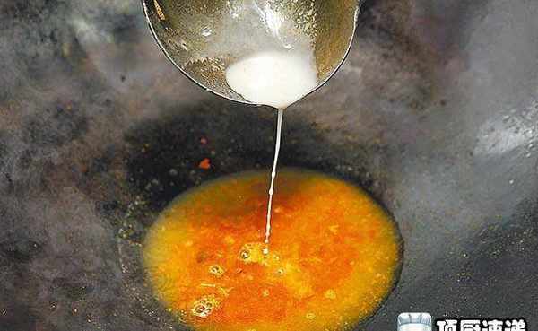 2、勾芡:将酱汁煮至略收汁,以太白粉水勾芡,起锅前淋少许油。