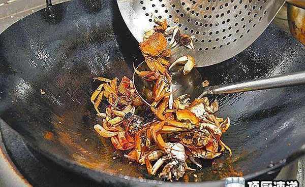 1、油炸:大闸蟹入油锅,以180℃油温炸至表面酥香。