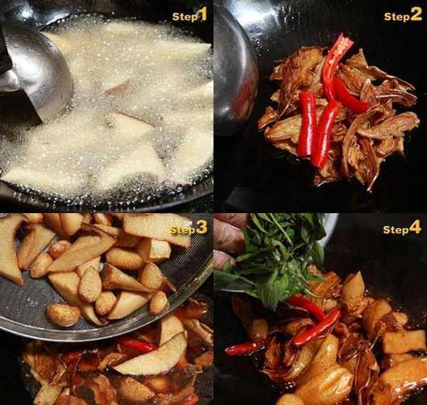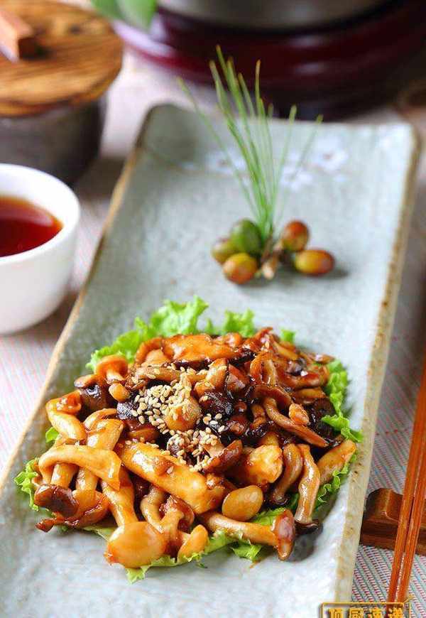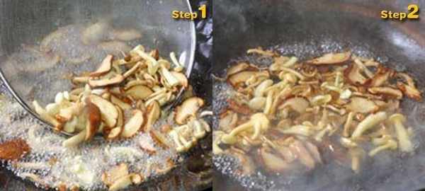 Tips:炸过的菇放入滚水中汆烫一下,可去除吸附在菇上的油脂,保持清爽口感。