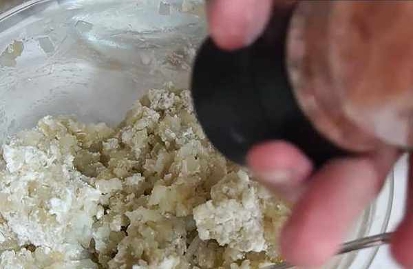 3、用叉子将马铃薯稍微压泥,下面粉、盐调味并增添厚度,搅拌均匀。喜欢松软口感,可以压得更细,喜欢颗粒口感,稍微轻压即可。