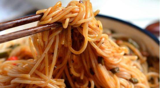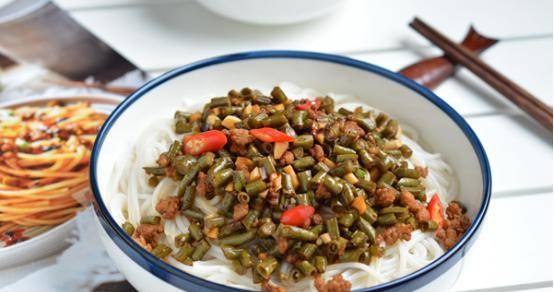 这道美食主要是为了吃酸的味道以及辣的味道,所以红辣椒和酸豆角应该算是主角了。全部将它们切成很碎的末末,另外还需要准备一块肉,最好是那种比较瘦的,也是需要切成碎末的,同样是备用。接着,我们来把米粉泡开,这里教给各位两种方法,都是超级方便,同时也能够很好泡开的。