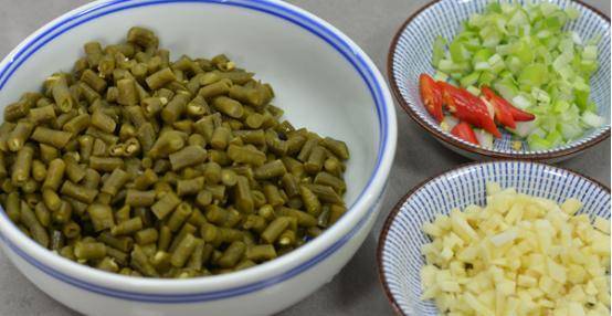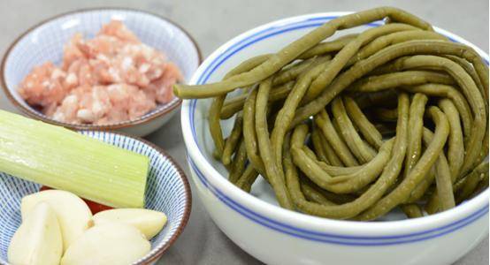今天所要分享的做法是拌的,但是不是那么干,算是跟北方的一种捞面的做法很类似的。但是在味道以及口感上,又会让南方生人的妈妈觉得极其满足,如同是吃到了家里的味道一般。这里所要用到的材料,除了米粉之外,还需要备一点大蒜,一些酸豆角,再来几根红色的辣椒配色。而酸豆角,也是家里自己做的,所以味道特别好。