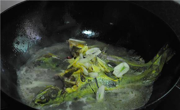 鱼两面都煎好后,倒入没过鱼身的水,撒入蒜片和姜片,盖上锅盖焖煮5分钟左右,黄刺鱼的肉特别细嫩,不需要煮太长时间,所以这道汤也是一道特别快手的营养汤,特别适合忙碌的上班族。