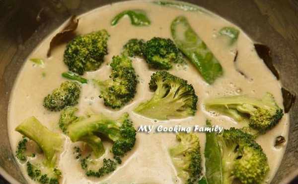 STEP5.再来加入蔬菜煮熟后备用。6.最后将烤好的鸡肉重新下锅并淋上蜂蜜煎到上色后再与绿咖喱酱一起盛盘就完成了。