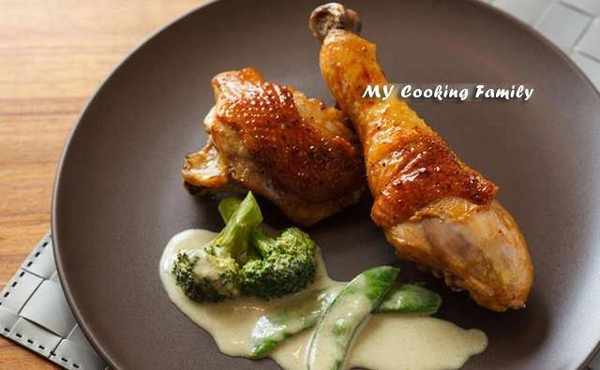 1.想要比较偷懒的人可以在鸡肉煎过以后就淋上蜂蜜,让蜂蜜与鸡腿一起进入烤箱烘烤。