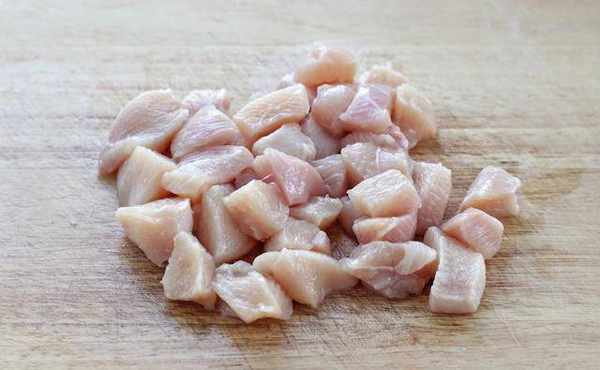 1、取下鸡胸肉去除筋膜,洗净鸡胸,切成较小的部分。