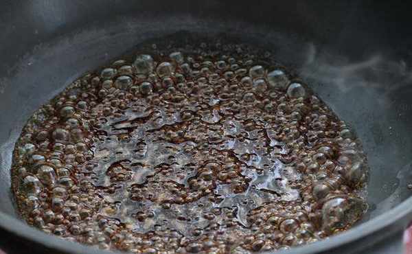 9、锅中无需放油,直接倒入调好的酱汁,小火边煮边搅拌至黏稠状态关火。
