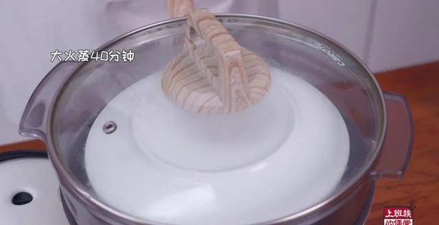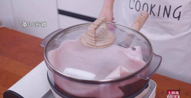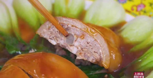 肉皮厚重,肉馅往里塞会回弹,无法塑形,只有软糯温顺的猪皮才能温顺服帖,再用大火蒸40分钟。