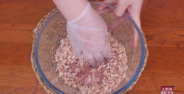 再放入口蘑碎,抓匀,盖上保鲜膜。