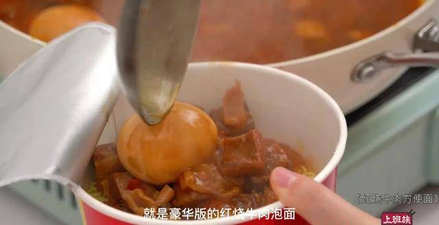 掏出红烧牛肉面,里面东西通通不要,只要面饼,把咱们煮好的牛肉浇上去,就是豪华版的红烧牛肉泡面~