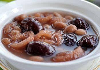 猪皮400克去毛洗净,然后切成小块,与洗净的干红枣100克,放入锅中,并且加水适量,以小火慢炖,然后加冰糖适量。分顿随意食之。本方除有一般的滋补作用之外,还可治疗血小板减少引起的各种出血病症。
