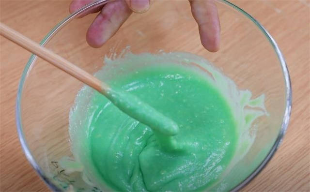 3.另外一份面糊我们就调成一个绿色,最后调好的效果也是非常漂亮的。