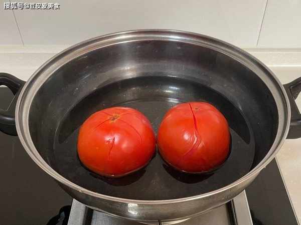 1、西红柿用刀在表皮划个十字,放入开水中,烫煮1分钟,捞出,撕掉表皮。(这样处理后,表皮就非常好撕掉了。)切成滚刀块。葱切成葱花,蒜切末。