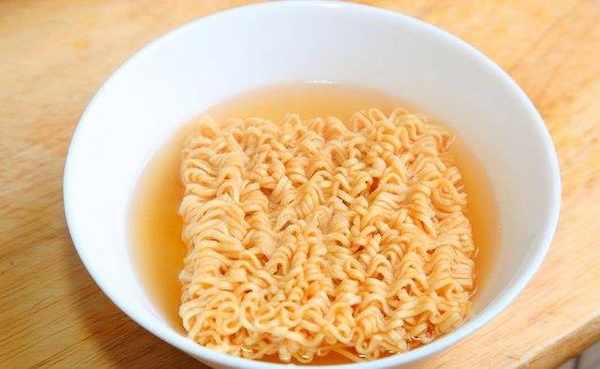 将泡面以热水泡约1分钟后捞起,鸡蛋打成蛋液,备用。