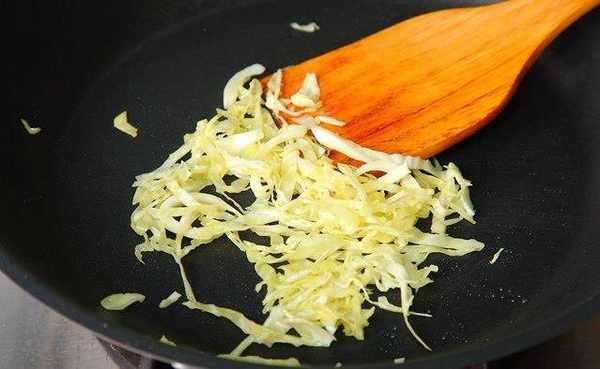 起一热油锅,油温约摄氏160度,高丽菜丝下锅炒约1分钟。