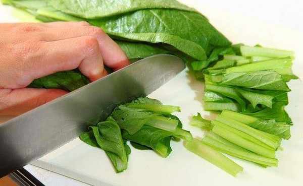 油菜洗净后切成小段状。