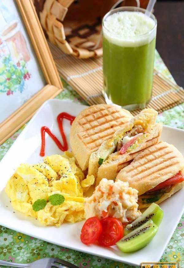 Tips:若无三明治机,可将所有馅料放入拖鞋面包内,用牙签或竹签串上、固定面包4周,再放入烤箱以摄氏170度烤约5~8分钟即可。