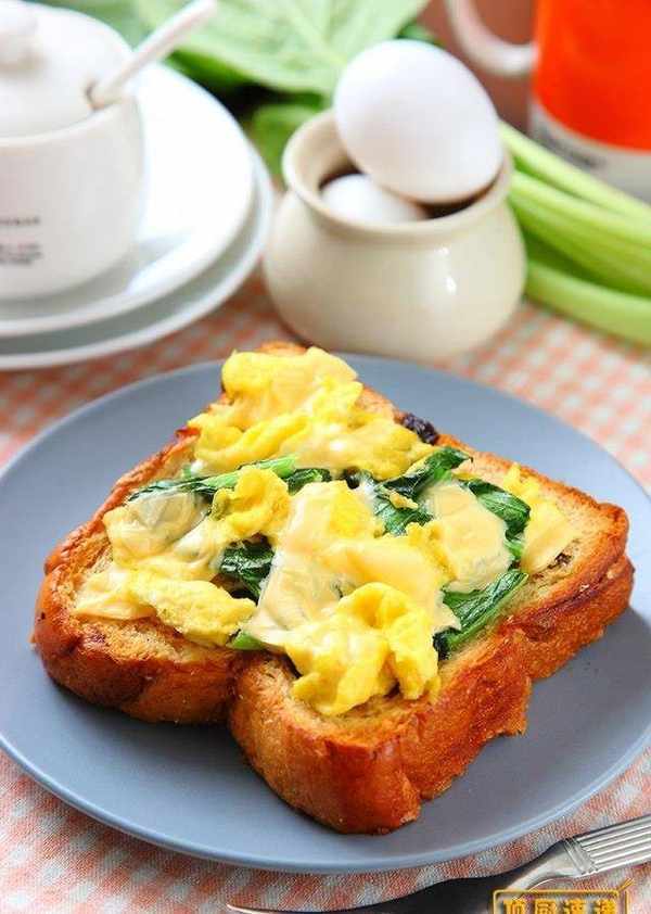 油菜80g、起士1片、鸡蛋2颗、土司1片