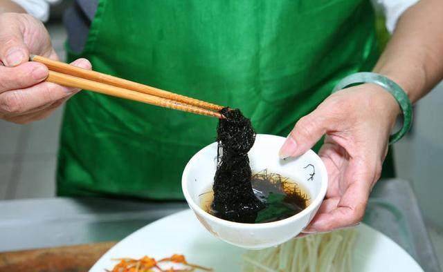 洗净发菜后用手揉成丝,加少许素高汤后一起蒸10分钟,备用。