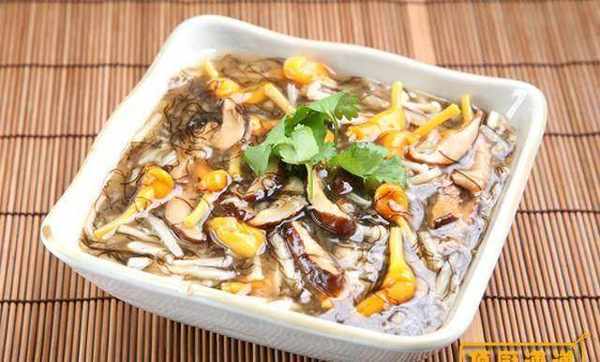另起油锅,爆香姜丝后下香菇丝、笋丝、金针,加入香菇水与素高汤一起煮滚5分钟,再下蒸过的发菜,也可加入粉丝增添爽口。