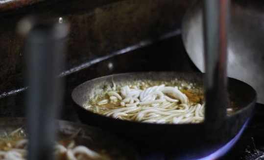 店內的面積倒是很大,有點像小時候的學生食堂,上世紀80年代的裝修風格,配上木桌子木凳子,一下子就讓人穿越回了從前。煮小鍋米線是用一個個小銅鍋,這個小銅鍋比較特別,把手是豎起來得,很長一個,銅鍋導熱快,放入食材很快就煮熟了,煮好的米線再倒入洋瓷碗,一碗重油重辣的小鍋米線就做好了,就真像在食堂吃飯的感覺了。