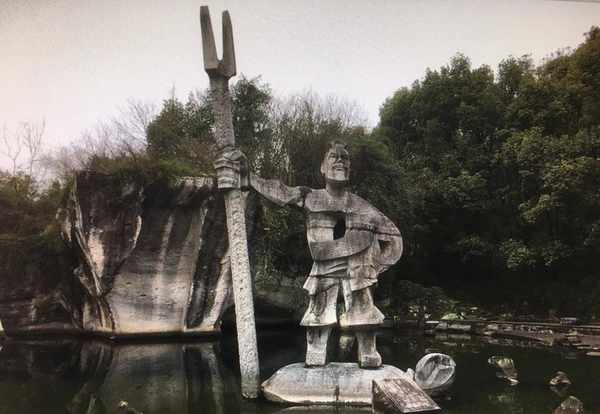 走进越中名士苑,就感觉有一股淡淡的清香扑鼻而来,同时也有一股浓厚的文化气息扑面而来,里面环境清幽,树木葱茏茂密,绿化率极高。此处是绍兴古今名人聚集地,名人雕像布满了整个园林。我们走着走着,看到了大禹手持兵器,气宇轩昂,高高的屹立在柯山脚下,大禹是华夏鼻祖,夏朝创建者,夏朝的开国之君。大禹治水的故事早已家喻户晓,三过家门而不入,公而忘私,带领人民战胜了洪水,功盖寰宇,千古留芳。