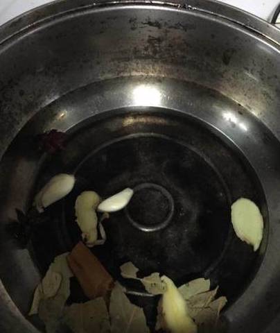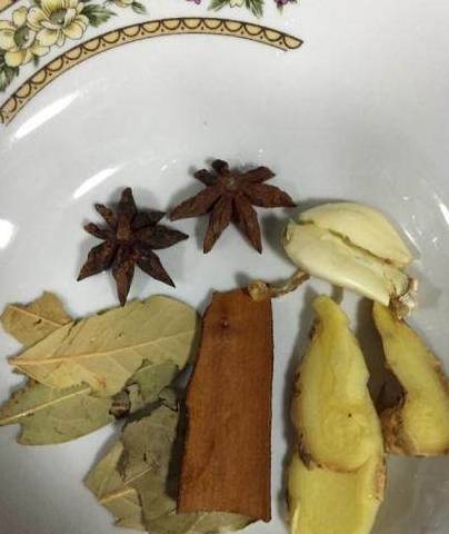 材料:姜,蒜,八角,桂皮,香叶,喜欢辣的可以放干辣椒和花椒粒,因为孩子要吃所以我没放