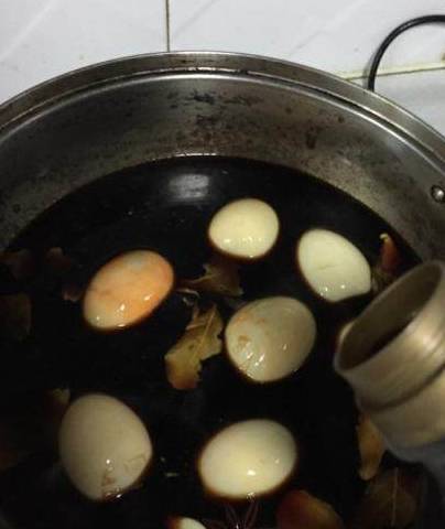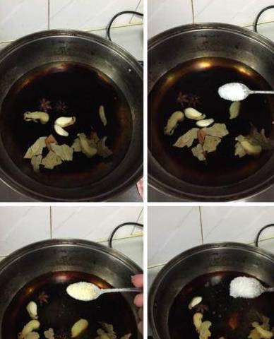 然后分别加入盐,鸡精,白糖,看你卤多少蛋放多少调味料