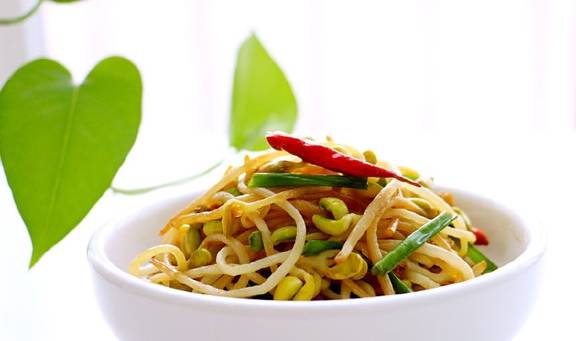 其实,豆芽菜的营养之丰富,远不是一句话就能说完的。拿黄豆芽来说,它的营养成分非常全面,蛋白质、各种维生素、粗纤维和钙磷铁等成分应有尽有,它能清热明目,能防止老人动脉硬化防治老年高血压,能促进孩子们的生长发育,还能淡化面部雀斑。