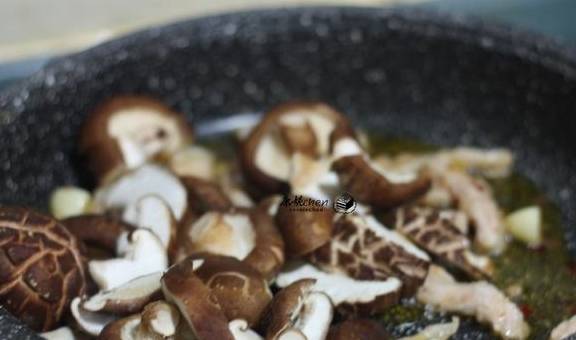 4放入香菇翻炒,把香菇炒香