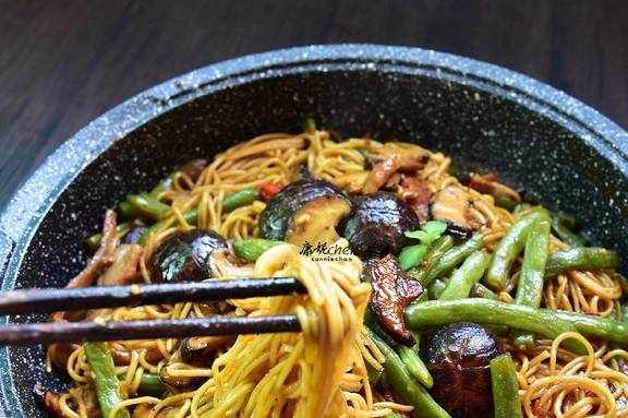 我做的豆角焖面就是自己琢磨的,我想面条要做得好吃又很营养,我放了鲜香菇,提升了面条的口感,又增加了面条的鲜美。