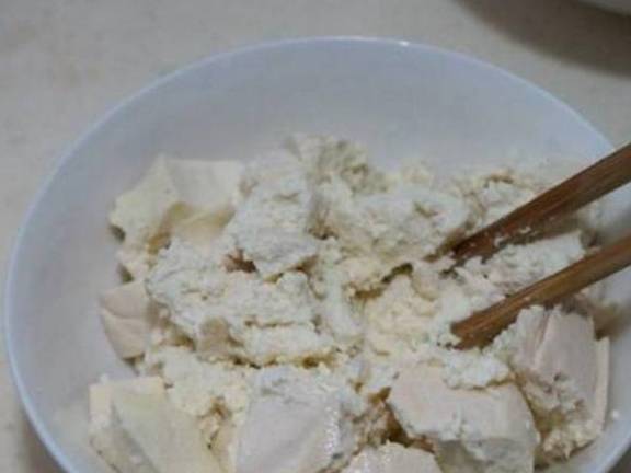 材料:豆腐300克、鸡蛋4个、葱花15克、料酒30克、精盐适量、味精2克、高汤150克猪油50克