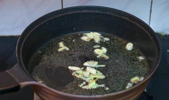 2、热锅凉油,放生姜,大蒜煸出香味。