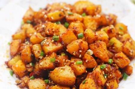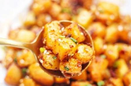 做这道孜然土豆丁最好用不粘锅,能将土豆煎炸得焦香四溢,调料也能充分入味,普通的锅很容易糊锅,达不到理想中的效果。另外,家里有小茴香这种香味调料的也可以放点,让做出的土豆丁香味更是浓郁。