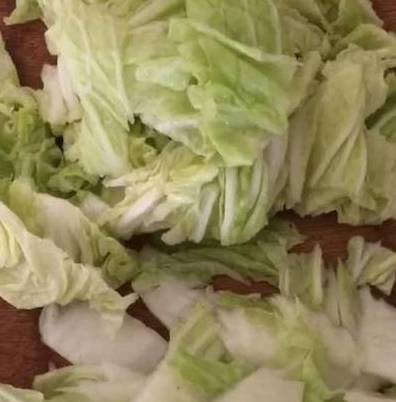 3.白菜切片!然后再提前准备醋溜白菜的调味汁,放入一勺香醋,酸爽的味道全靠它!(生抽加凉开水以及适量的盐和淀粉)这样菜的汁就完成了!